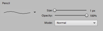 - 选择铅笔工具并将其大小设置为 1 px,不透明度设置为 100%