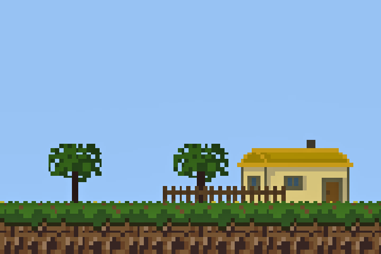 - 与此同时,我对我的艺术的另外 3 个元素(房子、栅栏和树)重复了相同的过程