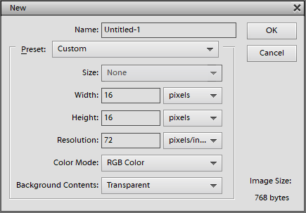 - 将宽度和高度设置为较小的值(在我的例子中,我将从制作地面瓷砖开始,因此宽度和高度设置为 16)