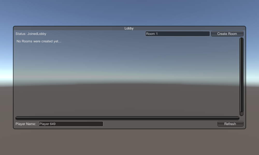 让我们首先创建一个包含大厅逻辑的大厅场景(浏览现有房间、创建新房间等):