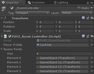 - 将 PUN2_RoomController 脚本附加到 _RoomController 对象