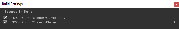 - 将 GameLobby 和 Playground 场景添加到构建设置中: