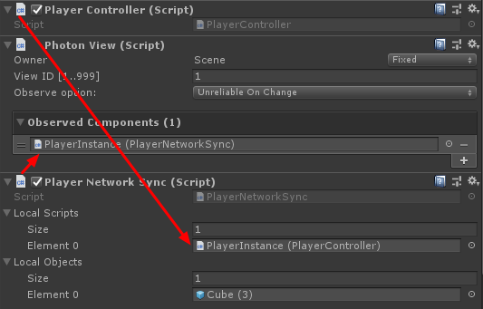 - 将 PlayerCntroller.cs 分配给 "Local Scripts" 并将 GameObjects(您想要为远程玩家停用的游戏对象)分配给 "Local Objects"