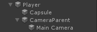 - 创建一个新的 GameObject 并将其命名为 "CameraParent" 并将其移动到 "Player" 对象内,将其位置更改为 (0, 1.64, 0)