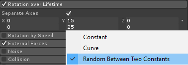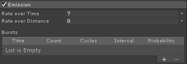 - 在粒子系统中启用以下模块:发射、形状、生命周期内的速度、生命周期内的颜色、生命周期内的大小 、生命周期内的旋转、外力、渲染器。